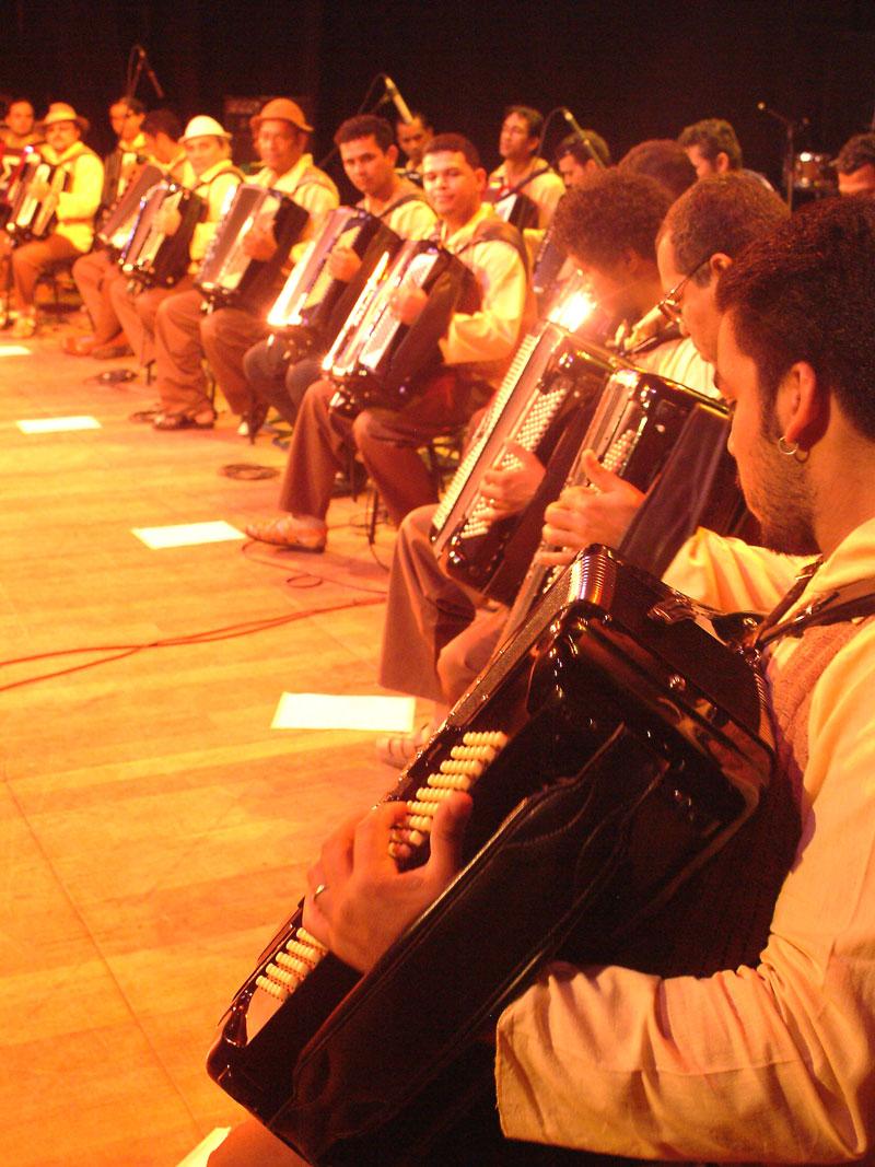 Uma noite de reverência aos artistas sergipanos. Assim foi a cerimônia de entrega do prêmio´Sanfona de Ouro´, realizada no Teatro Tobias Barreto. A iniciativa de Jorge Lins e Paulo Lobo contou com o apoio da Prefeitura de Aracaju, por meio da Fundação Municipal de Cultura, Turismo e Esportes (Funcaju). A Orquestra Sanfônica recepcionou o público e, logo a seguir, o prefeito Edvaldo Nogueira fez a abertura do evento. Ao final, voltou ao palco para entregar o troféu a grande homenageada, a cantora Clemilda. O prêmio atingiu todos os quesitos. Desde artistas alternativos, trio pé-de-serra, forró universitário, revelações, além de lembrar das bandas tradicionais e também do forró eletrônico. Além dessas categorias, a noite reservou premiações especiais para Antônio Carlos Du Aracaju e Josa ´O vaqueiro do Sertão´. Para o prefeito Edvaldo Nogueira o troféu ´Sanfona de Ouro´ é o reconhecimento merecido à cultura sergipana. É uma alegria muito grande para mim, como prefeito da cidade, poder fazer a abertura da entrega desse prêmio, que é uma grande iniciativa. Muito importante porque a cada dia que passa nós vamos fazendo com que a cultura da nossa gente seja cada vez mais reconhecida. Cada vez mais a nossa cidade e as pessoas que nela vivem podem cultuar e viver a nossa cultura, ressaltou o prefeito. Ainda segundo Edvaldo Nogueira, o evento soma-se ao Fórum de Forró, que foi o momento de discutir o forró; ao Forró Caju, onde o produto artístico pôde ser curtido e apreciado, sendo agora o espaço para dar o merecido valor a quem faz a raiz, a base cultural permanecer forte, premiando os artistas e homenageando aqueles que tornaram possível a elevação da cultura local. A premiação O prêmio ´Sanfona de Ouro´ surgiu há nove anos com o circo teatro Saltimbancos e depois foi interrompido. Nesses 10 anos que a gente passou tentando reformular e reativar o prêmio, a gente descobriu que o forró de Sergipe se profissionalizou muito mais. Hoje são mais grupos, a sonorização, iluminação, os shows são altamente profissionais. A Prefeitura comprou a idéia, apostou e a gente está fazendo também junto com a TV Sergipe. Ano que vem o prêmio vai ser incluído no calendário junino e as pessoas vão votar durante os festejos, o que é importante, contou um dos coordenadores, o dramaturgo Jorge Lins. Durante o mês de junho várias urnas colheram os votos do público. Foram contabilizados 3 mil votos em uma semana de votação. Quatro urnas instaladas nos teatros Tobias Barreto e Atheneu, na Casa do Artista e uma ambulante, colheram as opiniões do público. Além disso, uma comissão formada por representantes da Funcaju, da TV Sergipe e dos organizadores indicou outras categorias. Vários artistas foram lembrados e receberam seus troféus, confeccionados pelo artista plástico Beto Pezão. Alguns destaques foram para Amorosa e Rogério, como melhores cantores; João da Passarada, eleito o melhor cantor de banda, recebeu seu troféu das mãos da presidente da Funcaju, Lucimara Passos. O grupo Cabeça de Frade recebeu a premiação pela melhor pesquisa musical; a Orquestra Sanfônica também foi premiada, assim como o coordenador do Forró Caju, Fernando Montalvão, que ganhou como o melhor coordenador de eventos. Também foram escolhidos: a música mais tocada, o melhor trio pé-de-serra, revelação, forró universitário, melhor figurino, melhor CD e DVD, entre outras. Homenagens Pelos seus 43 anos de vida artística e 36 discos gravados, além da sua representatividade dentro da cultura nordestina e nacional, a cantora Clemilda foi a grande homenageada do evento. Artista como Chiko Queiroga e Antônio Rogério, Amorosa, Joseane de Josa, Paulo Lobo e banda Sulanca, cantaram sucessos da carreira da homenageada, que da platéia também cantou junto com cada um deles. Eu fico muito contente. Quero agradecer a Paulo Lobo e Jorge Lins, por essa festa e homenagem tanto a mim, quanto aos meus colegas sanfoneiros. Eu acho bom, adoro, porque acredito que a gente tem que receber homenagem em vida, assim a gente pode participar. E vendo essas homenagens que eu recebo, fico muito grata. Eu não tenho palavras para agradecer também ao prefeito, que sempre admirei pela sua simplicidade, disse a artista, após receber seu troféu das mãos de Edvaldo. Um dos fatos que marcou a minha juventude foi ouvir o programa ´Forró no Asfalto´ em um radinho de pilha. Clemilda é uma pessoa que marcou e marca todos nós, por isso é uma grande felicidade entregar esse prêmio, mais do que merecido pelo trabalho, pela obra, pelo orgulho que dá a cada um de nós, concluiu o prefeito.