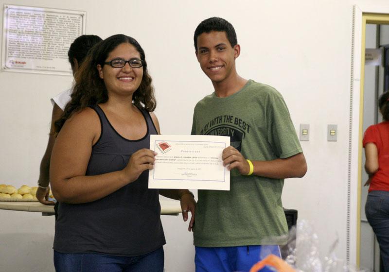 A Semana do Folclore na Biblioteca Clodomir Silva foi encerrada na tarde de hoje,quarta-feira, com apresentação dos trabalhos desenvolvidos nas oficinas, entrega de certificados e confraternização entre os participantes. Para a diretora Zélia Trindade, o evento superou a expectativa inicial. Houve o envolvimento da comunidade, tanto nas oficinas quanto nas outras atividades oferecidas, avalia. A Semana foi iniciada no dia 20, com uma programação diversificada. Além das oficinas - de sandálias e bolsas decoradas, artesanato e capoeira-, houve palestras, exposições e exibição de vídeos sobre temas da cultura popular. Este é o quarto ano no qual é realizada a Semana do Folclore na biblioteca. A diretora, no entanto, aponta um diferencial neste ano: a participação dos usuários do CAPS (Centro de Apoio Psicossocial). Usamos o espaço da biblioteca, numa atividade cultural, para que a comunidade pudesse conhecer a dinâmica do CAPS. É uma forma de inclusão social, afirmou. A usuária do CAPS Edilene Almeida, 46 anos, esteve pela primeira vez numa biblioteca. Ela participou da oficina de bolsas. A biblioteca é muito interessante. Desenvolve a nossa mente. Gostei de aprender coisas novas. Foi muito bom estar aqui, conta. A dona-de-casa Ednilza Nascimento Santos, 25 anos, também participante da oficina de bolsas, aprova a iniciativa de integrar comunidade e usuários do CAPS. Uma excelente idéia. Conheci novas experiências, um outro modo de vida, observa. Outros conhecimentos que a pequena Maria Clara da Costa Ribeiro, 6 anos, não deixou passar. Foi tudo bom, mas gostei mesmo de pintar e colocar os desenhos na bolsa. Adorei, disse.