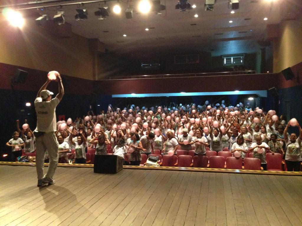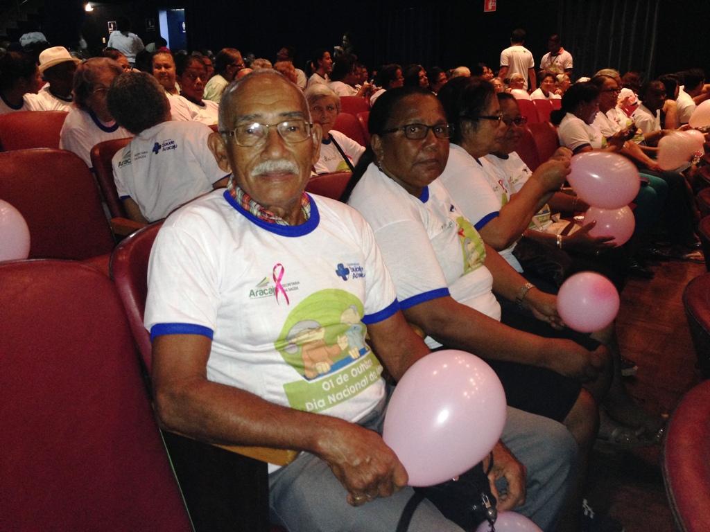 O teatro da Universidade Tiradentes, no Centro da capital, ficou pequeno para tanta emoção. Na tarde desta quinta-feira, 1º, mais de 500 idosos atendidos pelas Unidades de Saúde da Família (USFs) participaram de uma tarde especial alusiva ao Dia Nacional do Idoso, celebrado hoje. A ação também abriu os trabalhos para uma série de atividades que a Secretaria Municipal de Saúde (SMS) fará ao longo do mês de outubro para comemorar o Outubro Rosa. A celebração contou com o apoio dos músicos do Sons do SUS e também com as apresentações do grupo de Idosos da Unidade de Saúde da Família Dona Sinhazinha ‘De Bem Com a Vida’ que apresentaram o espetáculo “Índias Há Mais Tempos”, além de uma esquete exclusiva da Companhia das Artes Tetê Nahas (abordando uma temática ligada ao cotidiano dos idosos e hábitos saudáveis) e também com a atividade do pessoal da Academia da Cidade que agitou os corpos.