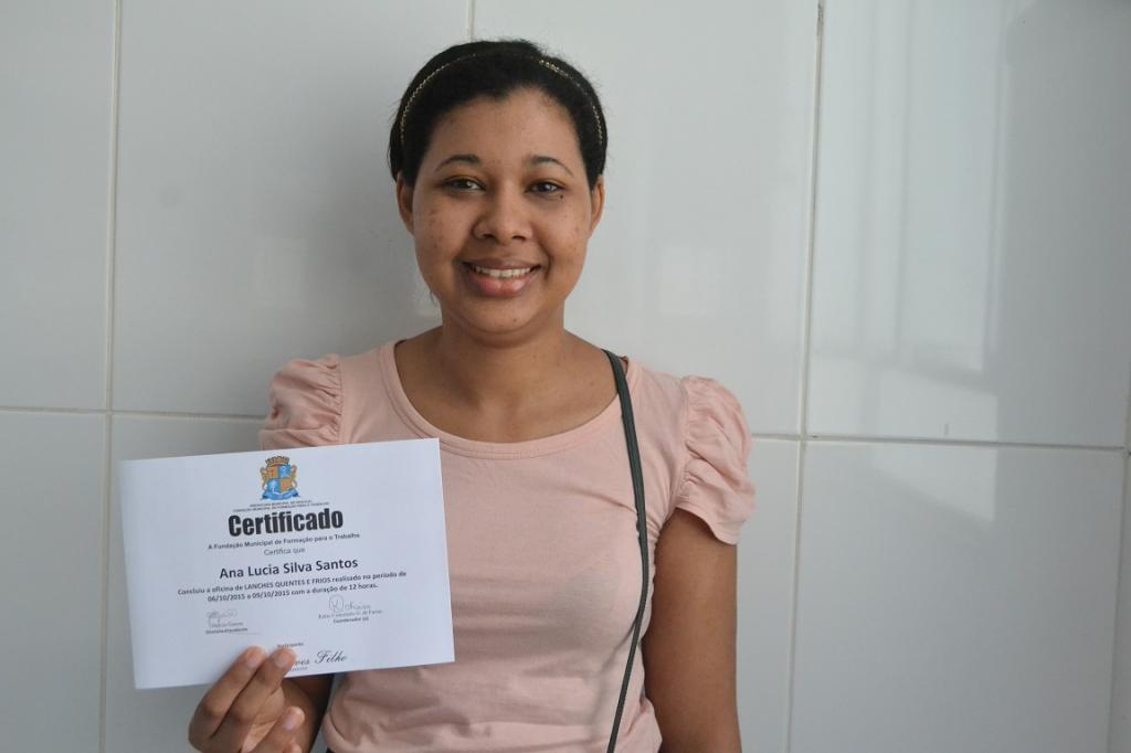 Nesta terça-feira, 13, a Fundação Municipal de Formação para o Trabalho (Fundat) realizou a entrega de certificados aos alunos da primeira turma do curso livre de Lanches Quentes e Frios (12h). A qualificação foi ministrada no Lar Evangélico da Igreja Assembleia de Deus, uma das instituições parcerias da Fundat, localizada no bairro Siqueira Campos. Com o término das aulas, a Fundação alcançou a marca de 54 turmas ofertadas na área de culinária em 2015.
