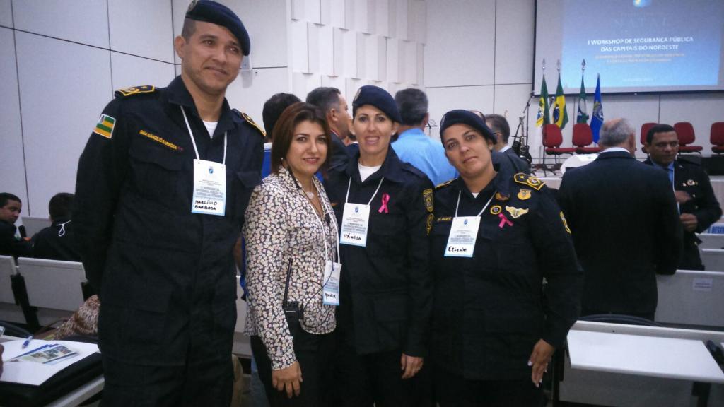 A secretária municipal da Defesa Social e da Cidadania, Georlize Teles, o Diretor Geral da Guarda Municipal de Aracaju, coronel Enilson Aragão e os coordenadores dos projetos Guarda Cidadã e Anjos Azuis nas Escolas, GMs Eliene Oliveira, Pâmela Schardosim e Marcílio Barbosa participam do I Workshop de Segurança Pública das Capitais do Nordeste realizado em Natal, capital do Rio Grande do Norte.