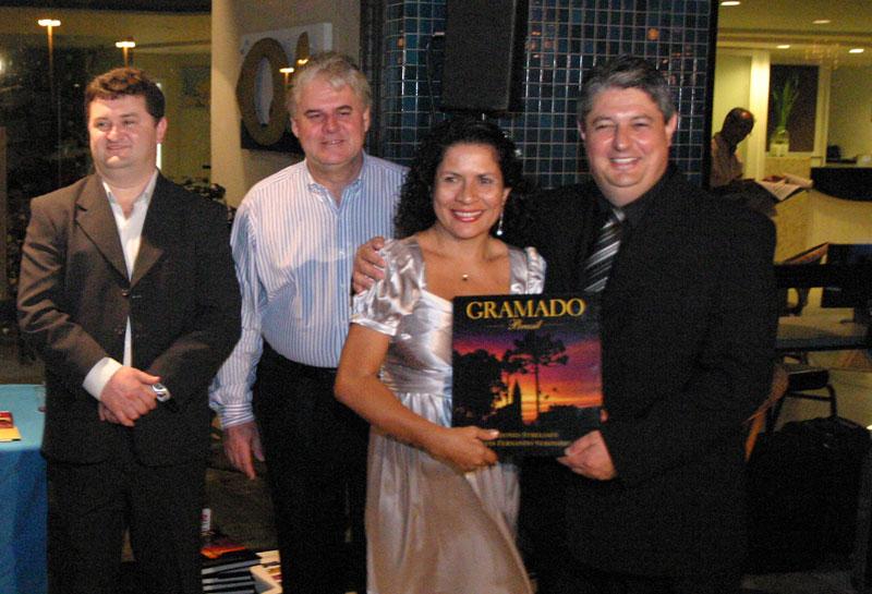 Na noite de ontem, terça-feira, durante a Noite de Gramado em Aracaju, que ocorreu no Hotel Aquários, na Orla da Atalaia, a Prefeitura Municipal foi homenageada pelo apoio dado à comitiva responsável pela realização do evento. Representando o prefeito Edvaldo Nogueira, a diretora de Turismo da Fundação Municipal de Cultura, Turismo e Esportes (Funcaju), Tanit Bezerra, recebeu um livro com fotos de Leonid Streliaev e texto de Luís Fernando Veríssimo, que retrata as belezas de Gramado, cidade turística localizada no a 110 km da capital do Rio Grande do Sul, Porto Alegre. A noite serviu para mostrar aos aracajuanos as potencialidades turísticas da cidade. Para isso, os organizadores ofereceram aos convidados um café colonial tipicamente gramadense, além de expor painéis com fotos e exibir vídeos promocionais, que mostraram os pontos turísticos e o conhecido Natal Luz de Gramado, comemorado de 15 de novembro a 15 de janeiro com uma série de eventos. Aracaju é a 1ª cidade do Nordeste a receber a comitiva este ano. Daqui, o grupo seguirá para Xingó, Maceió, chegando por fim a Recife. “Estamos divulgando o potencial turístico de Gramado aqui e nessas outras cidades e, em troca, estaremos abrindo espaço lá para que as capitais do Nordeste, entre elas Aracaju, mostrem o que a região tem a oferecer aos turistas de Gramado e do Rio Grande do Sul”, destacou o vice-prefeito de Gramado, Nestor Tissot, que integra a comitiva. De acordo com Tanit Bezerra, de 23 a 25 de novembro, durante o Festival de Turismo de Gramado, haverá a Noite Sergipana em Gramado. “Este ano, Aracaju vai participar mais intensamente, divulgando principalmente o Forró Caju, mas mostrando também nosso reveillon, o Projeto Verão e outros eventos e potencialidades”, adiantou a diretora de turismo. De acordo com Nestor Tissot, a receptividade da Prefeitura de Aracaju e dos aracajuanos de forma geral foi excepcional, o que mostra a consciência em relação à importância do turismo e do bom tratamento dispensado ao turista para a vida econômica do município. “O turismo é uma indústria sem chaminé, que proporciona a distribuição rápida e constante de renda”, avaliou o vice-prefeito. Gramado Localizada na região das Hortênsias, Gramado possui uma ampla infra-estrutura turística, com 110 casas gastronômicas e 146 hotéis e pousadas, que disponibilizam aproximadamente 11.000 leitos. A cultura é marcada pela influência dos portugueses, italianos e alemães, povos responsáveis pela ocupação e desenvolvimento da cidade, que deixaram marcas significativas na culinária e costumes da população local. Entre os eventos mais conhecidos que acontecem anualmente em Gramado, estão os festivais de Inverno, Gastronomia, Dança, Chocolate e Cinema, além do Natal Luz, que atrai cerca de 600 mil visitantes durante o período de 15 de novembro a 15 de janeiro.