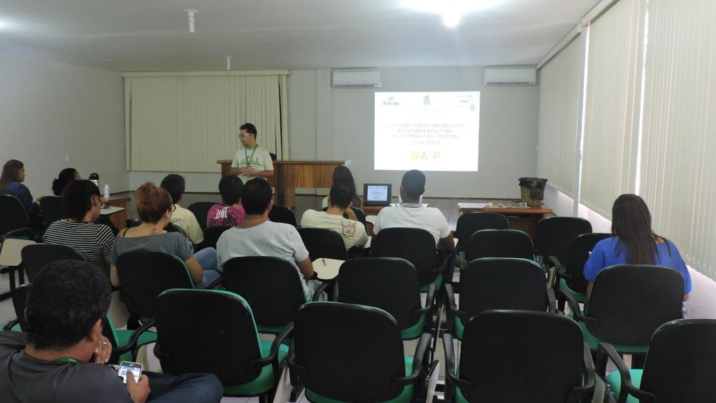 Os servidores da Secretaria Municipal do Meio Ambiente (Sema) prestigiaram nesta sexta-feira, 06, uma palestra realizada pelo coordenador da Agenda Ambiental da Administração Pública (A3P), Cleverton Costa Silva. O evento aconteceu no auditório da Secretaria Municipal da Fazenda (Semfaz) e teve como tema ‘A Responsabilidade Socioambiental como Instrumento do Consumo Consciente'.