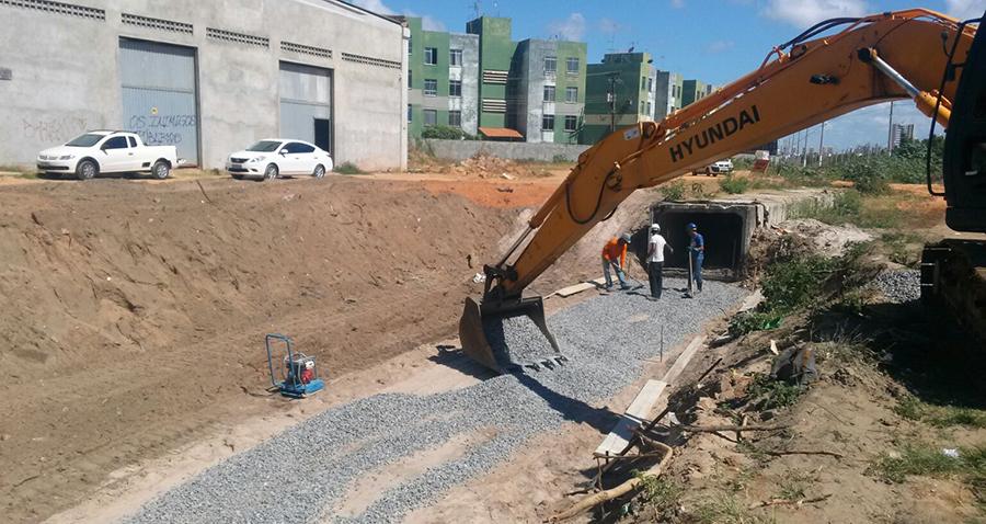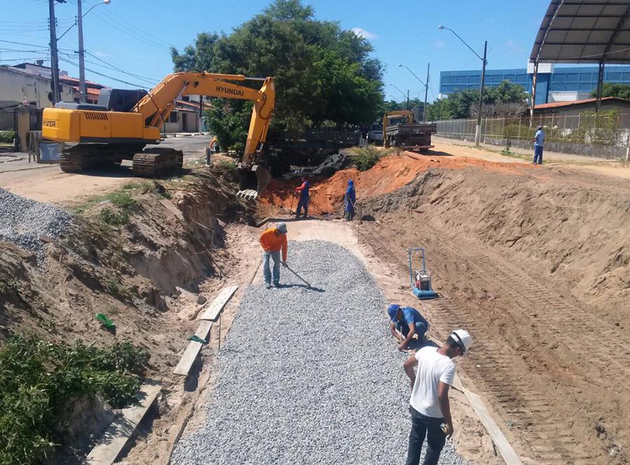 A Prefeitura de Aracaju, por meio da Empresa Municipal de Obras e Urbanização (Emurb), iniciou esta semana a preparação do terreno para implantar as células (placas de concreto) do canal de macrodrenagem que está sendo executado nas avenidas Caçula Barreto e Dr. Tarcísio Daniel dos Santos, conhecida como Canal 3, no conjunto Augusto Franco, bairro Farolândia.