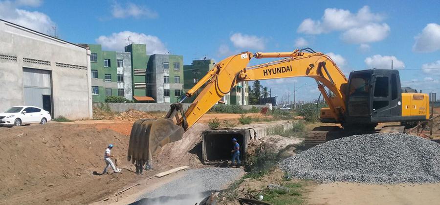 A obra é dividida em várias etapas. Após o levantamento topográfico, foi concluída a escavação do primeiro trecho do canal para receber as células. Os serviços não podem ser ampliados porque a Emurb aguarda a liberação da Administração Estadual do Meio Ambiente (Adema) para supressão de vegetação. Até o momento, a empresa só pode trabalhar em uma área de pouco mais de 50 m, de uma extensão total de 750 m. Quando a Adema emitir a licença, as obras podem avançar.