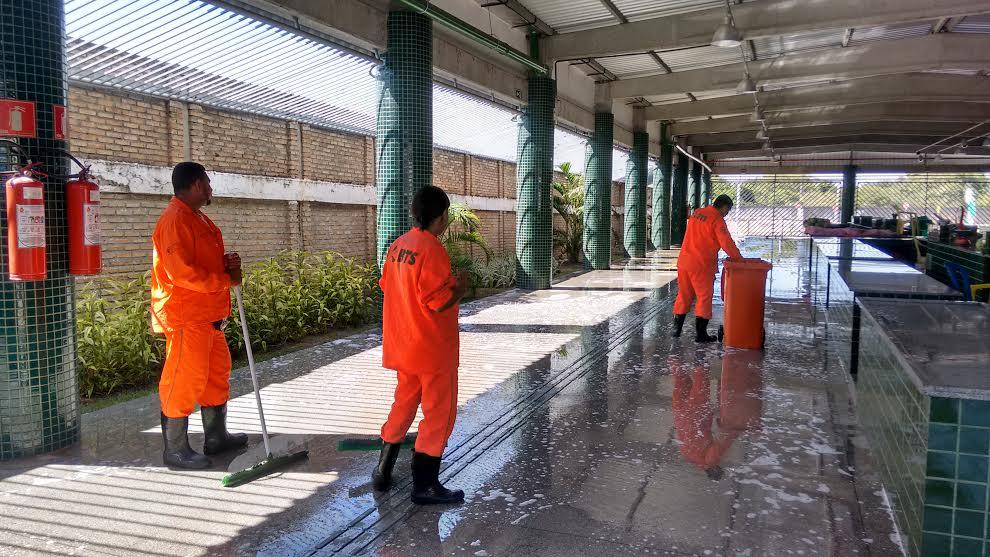 De acordo com o administrador do mercado, Antonino Mateus, uma equipe de 12 profissionais realizam a lavagem de toda a área interna e externa com água misturada ao sabão e desinfetante, com auxílio do carro pipa. Além dessa manutenção semanal, todos os dias o mercado passa por varrição e recolhimento de lixo que são devidamente descartados em locais apropriados.