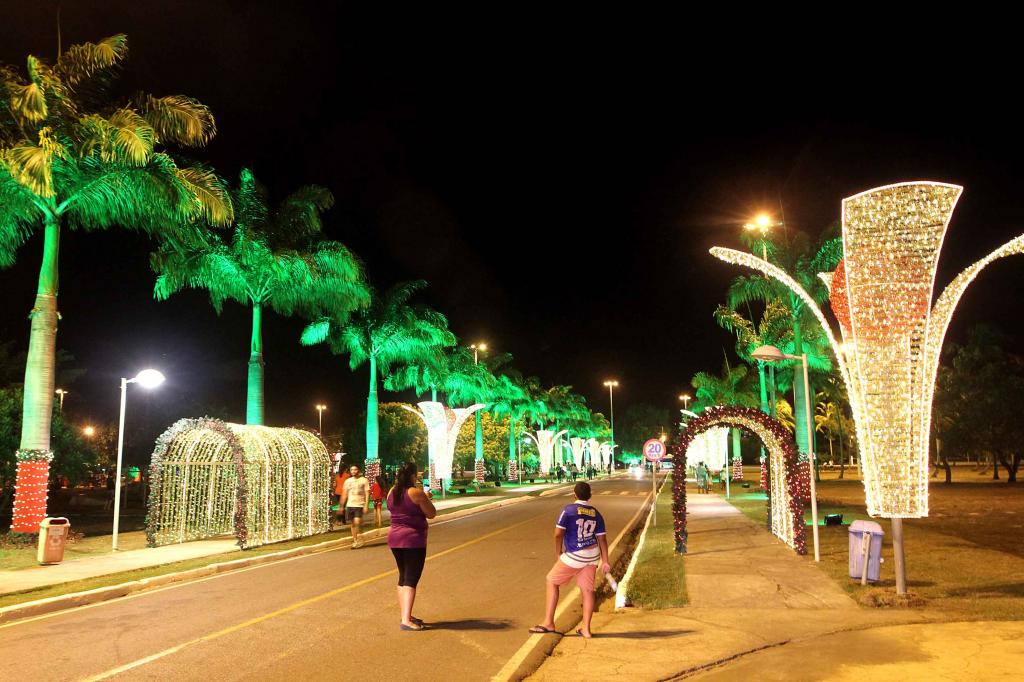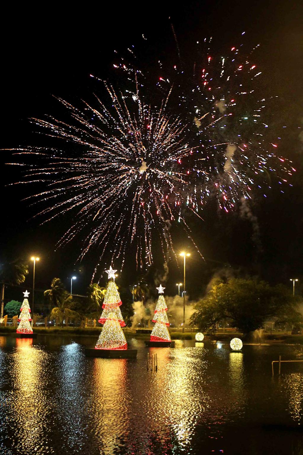 Esse ano foram instaladas oito árvores e doze bolas gigantes no lago, além de cordões em LED e festões que decoram dezesseis postes na entrada principal do Parque. As palmeiras não foram esquecidas e receberam projetores em tom esverdeado que realça a copa das árvores. A novidade é que a decoração também poderá ser contemplada de dia, já que materiais que refletem a luz do sol darão um brilho especial nas árvores de natal do Parque.