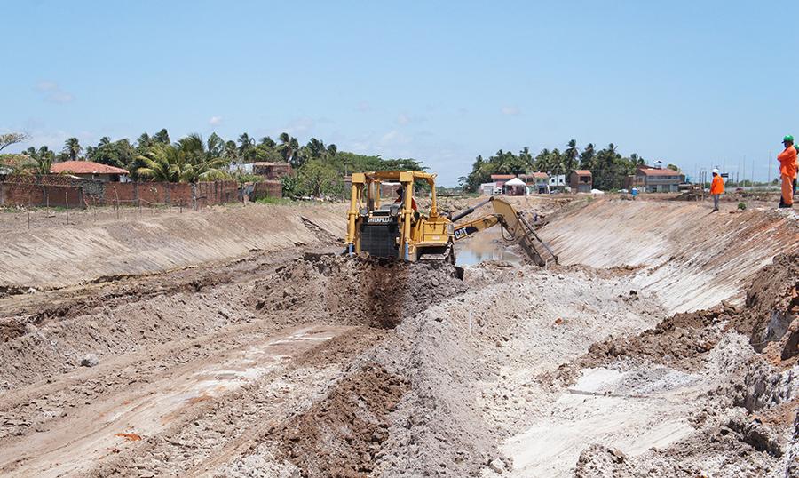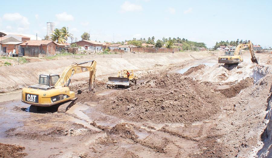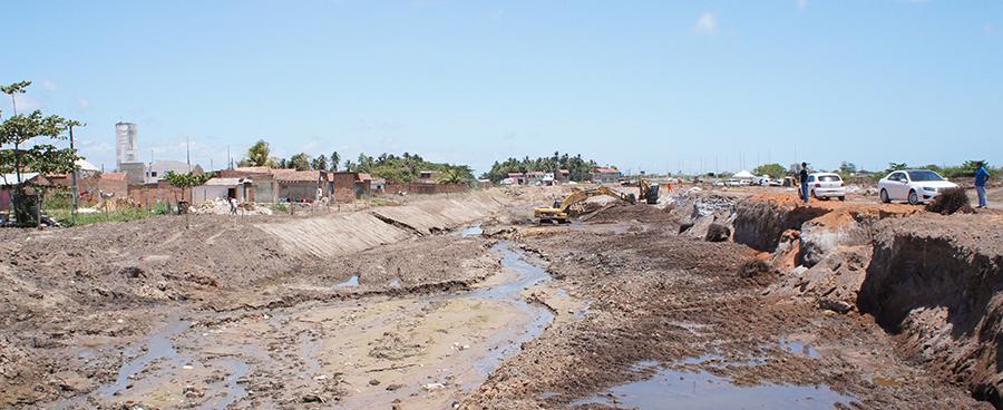 Com aproximadamente 50% já executada, a obra segue a todo vapor e já chega no trecho próximo à avenida Alexandre Alcino. Utilizando 24 caçambas, seis escavadeiras, seis tratores, duas pás escavadeiras, três caminhões pipas, dois rolos compacto e um contingente de mais de 60 profissionais, a dragagem começa a transformar a paisagem da região.