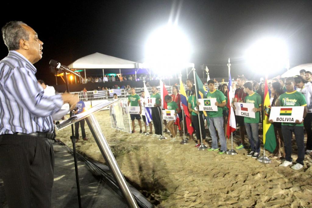 Após o sucesso da etapa nacional do Beach Games, foi aberta ontem, 01, a etapa internacional com a participação de 27 delegações dos sete países participantes. O prefeito de Aracaju, João Alves Filho, prestigiou a solenidade de abertura ao lado do vice-prefeito José Carlos Machado, na arena montada na praia da Atalaia especialmente para o evento que é realizado pela Confederação Brasileira do Desporto Universitário (CBDU), com o apoio da Prefeitura de Aracaju. As seleções do Uruguai e da Argentina disputaram a partida de futebol de areia na abertura que terminou com a vitória uruguaia com três gols contra um da seleção Argentina.