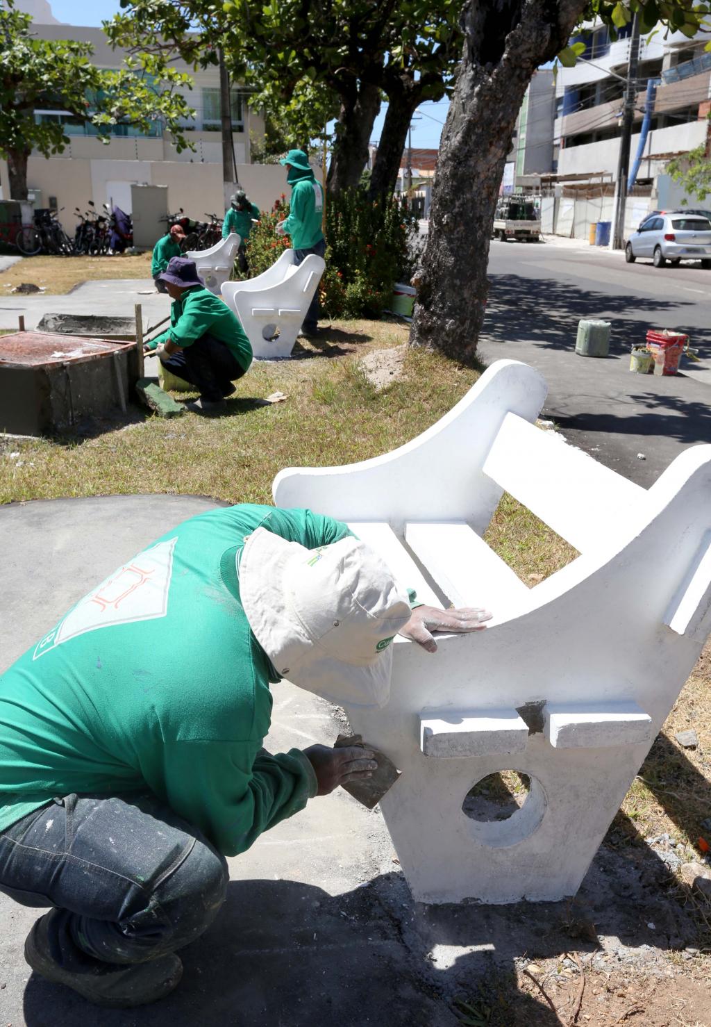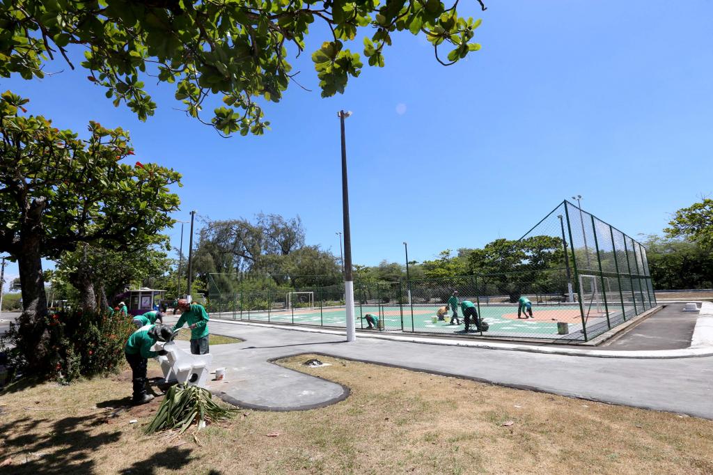 As equipes da Empresa Municipal de Obras e Urbanização (Emurb) atuam com diversos serviços, dentre eles a recuperação do pavimento e dos bancos, além da reforma de quadra para a prática de atividades físicas e desportivas dos moradores.