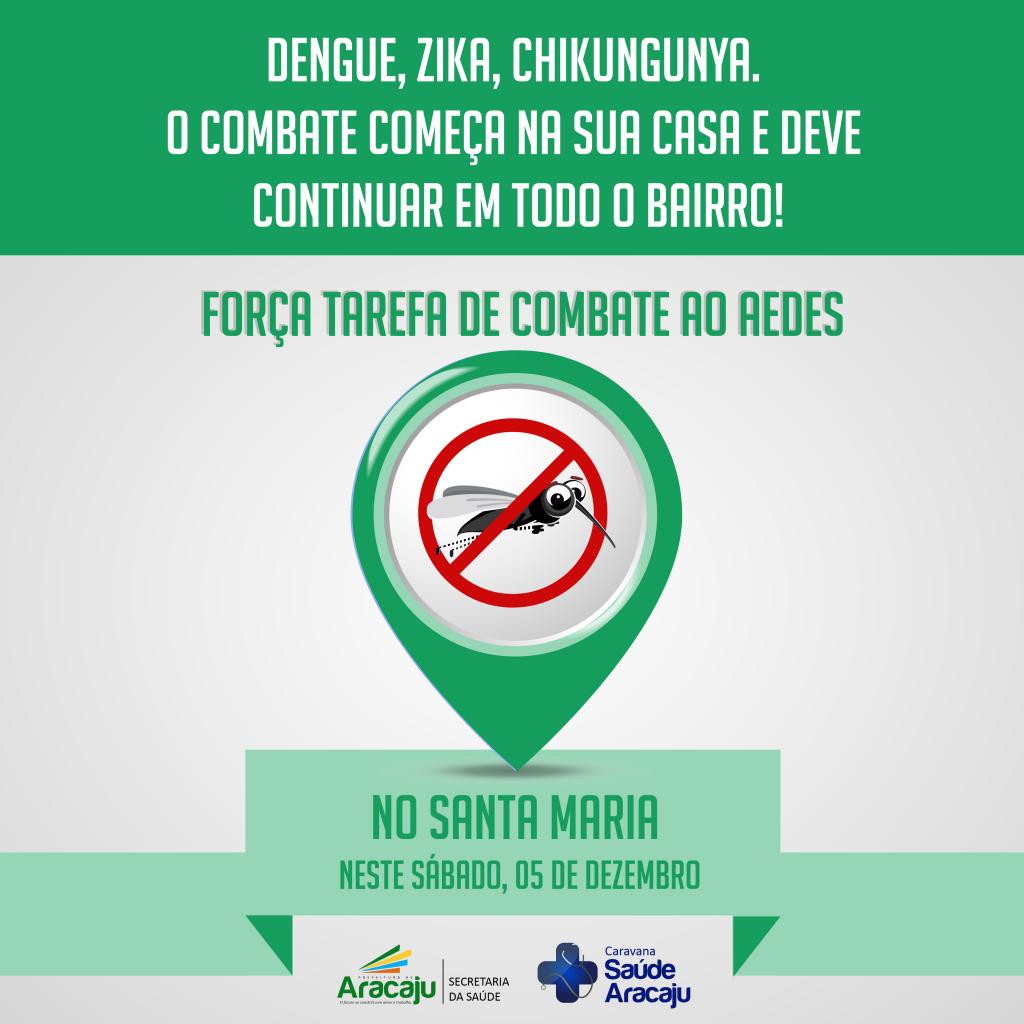 Neste primeiro sábado de dezembro, 5, a Prefeitura de Aracaju, através da Secretaria Municipal da Saúde (SMS), realiza, no bairro Santa Maria, mais um mutirão de combate aos focos do mosquito transmissor da Dengue, Zika Vírus e febre Chikungunya. Será uma mega operação, envolvendo 100 agentes – entre de Endemias e Comunitário -, com estimativa de visitar 2 mil estabelecimentos, entre residências, lojas e terrenos, que estarão fazendo a identificação, o combate e também passando orientações à população. A concentração dos agentes será na Unidade de Saúde da Família (USF) Elizabeth Pita.