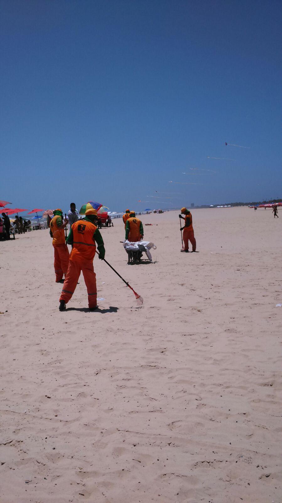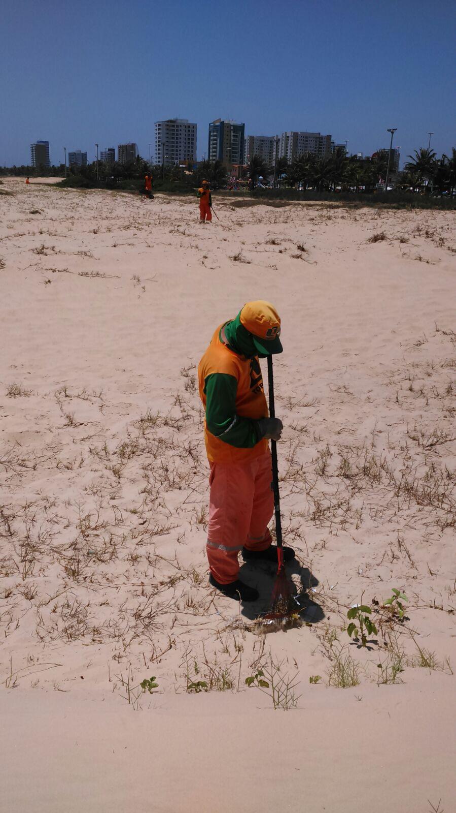 Os agentes da Empresa Municipal de Serviços Urbanos (Emsurb) fazem a limpeza diária da areia da praia, bares e calçadas da orla, para a diminuir dos resíduos deixados pelos frequentadores, mas é nas segundas, terças e sextas que os serviços são intensificados, onde eles retiram cerca de 1,5 tonelada de material descartado irregularmente na areia.