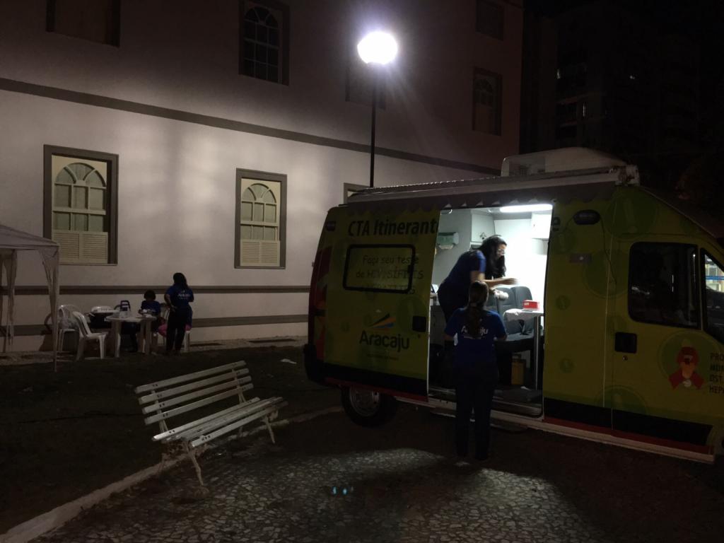 A Secretaria Municipal de Saúde (SMS), por meio do Consultório da Rua e de diversos programas, promoveu na noite desta quarta-feira, 9, ações de prevenção e promoção à saúde para a população em situação de rua. O evento aconteceu na praça Fausto Cardoso e reuniu cerca de 30 pessoas. Na ocasião, foram ofertados testes rápidos de HIV e Sífilis, vacinação contra a gripe (H1N1) e Hepatite, aferição de pressão, além de música e rodas de conversa sobre a prevenção de doenças.