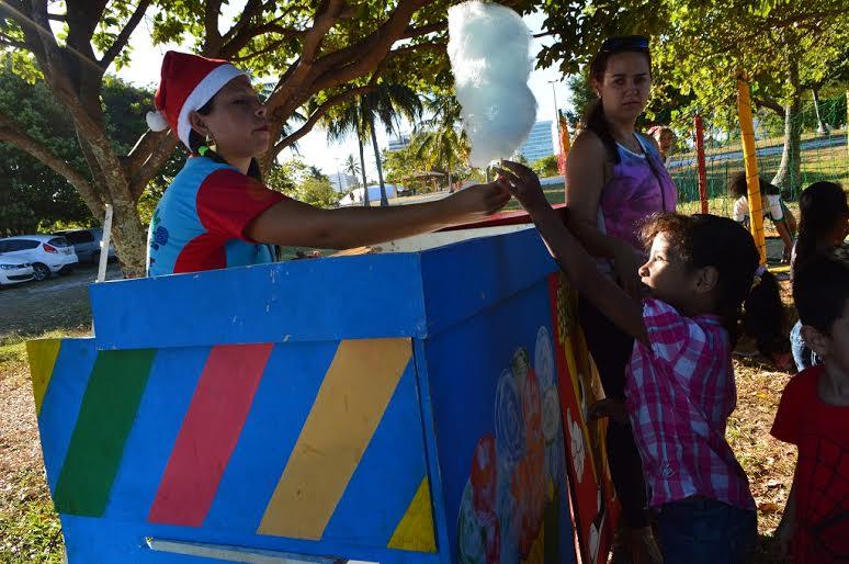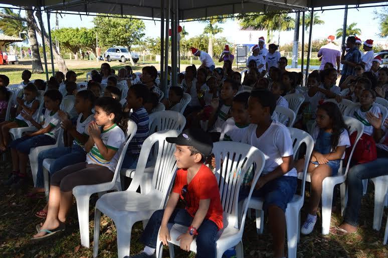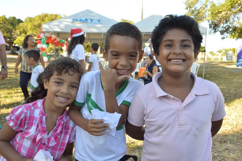 Sara, Rafael e Luís Miguel são alunos da Escola Municipal de Educação Infantil Nossa Senhora Aparecida, na Zona Norte da capital. Graças a uma ação desenvolvida pelos integrantes dos projetos Guarda Cidadã e Anjos Azuis nas escolas, essas e outras 85 crianças tiveram a oportunidade de participar de um Auto de Natal com apresentação de teatro de bonecos, parque de diversão, algodão doce e a presença de papai Noel que fez a alegria da criançada com a distribuição de presentes.