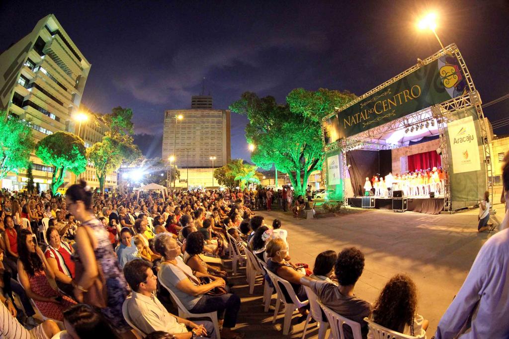 O espírito de Natal invadiu o a Praça General Valadão, localizada no centro da cidade, nesta terça-feira, 22. O ‘Natal no Centro’ foi realizado pela Prefeitura de Aracaju, em parceria com a Funcaju (Fundação Cultural Cidade de Aracaju) e contou com a apresentação de grupos artísticos, que encantaram a todos que estiveram presentes. O Prefeito João Alves esteve na apresentação e ficou maravilhado com as apresentações e com a importância que o Natal tem para o povo brasileiro.