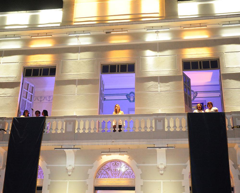 Inédito. Setenta vozes ecoaram aos quatro cantos do centro da cidade, transmitindo amor, paz, esperança e fé em Jesus Cristo, fortalecendo o sentido da natividade. É Natal para a Fundação Cultural Cidade de Aracaju (Funcaju), que realizou na noite de ontem, 22, na Praça General Valadão, o “Natal no Centro”, reunindo centenas de pessoas. Os coralistas foram distribuídos em 23 janelas do Centro Cultural de Aracaju (antiga Alfândega), emocionando os espectadores. A cantata natalina trouxe a magia e o brilho do período natalino, surpreendendo o público. A noite também foi marcada pela participação de grupo folclórico Pastoril de Japaratuba; do auto de natal ‘Tá caindo fulô’, encenado pelo grupo Imbuaça e a apresentação das crianças dos Canarinhos de Aracaju.