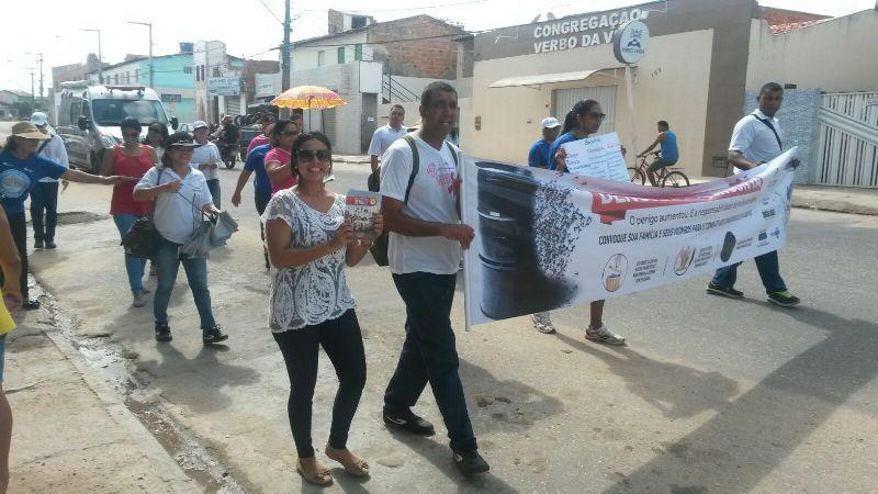 A Unidade de Saúde da Família (USF) Carlos Fernandes de Melo, localizada no bairro Lamarão, realizou na manhã desta quarta-feira, 30, caminhada e panfletagem contra o mosquito Aedes aegypti (transmissor da Dengue, Zika Vírus e Febre Chikungunya). A ação contou com a presença dos agentes comunitários de Saúde, agentes de Endemias, assistente social, enfermeiras e o Conselho de Segurança. Na ocasião, uma viatura da Polícia Militar também acompanhou a caminhada e colaborou na luta contra o mosquito.