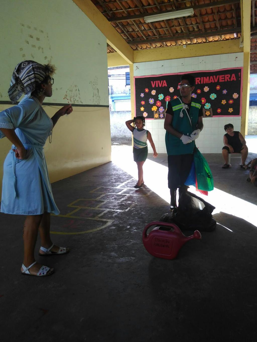 A primeira escola a receber a equipe foi a Profª Áurea de Melo Zamor, localizada na Praça Dário Ferreira Nunes, s/n, bairro São Conrado. A ação aconteceu às 14h30min. desta quarta-feira, 2 de fevereiro. Os atores da Sema realizaram esquetes teatrais, cujo foco foi a prevenção contra o mosquito da Dengue. A peça informa como devem ser descartados os resíduos e aborda também assuntos relacionados à coleta seletiva. A personagem criada pelo teatro do EA, Dona Zika, entrou em ação, desta vez, pegando no pé de um catador de lixo.