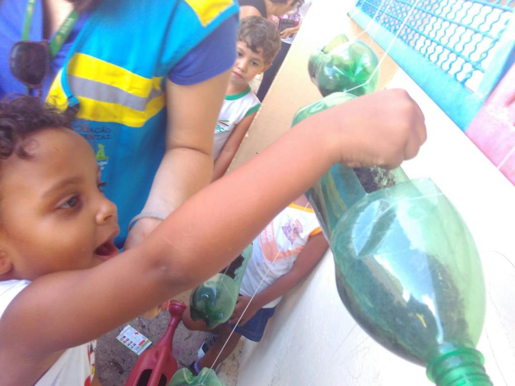 Além do sensibilização sobre o Aedes aegypti, o  Departamento Educação Ambiental da Sema realizou também, nesta quarta-feira, a revitalização da Horta Vertical do Colégio Áurea de Melo Zamor. Nesse projeto, a crianças aprendem a plantar e quais os cuidados para manter a horta em sua escola.
