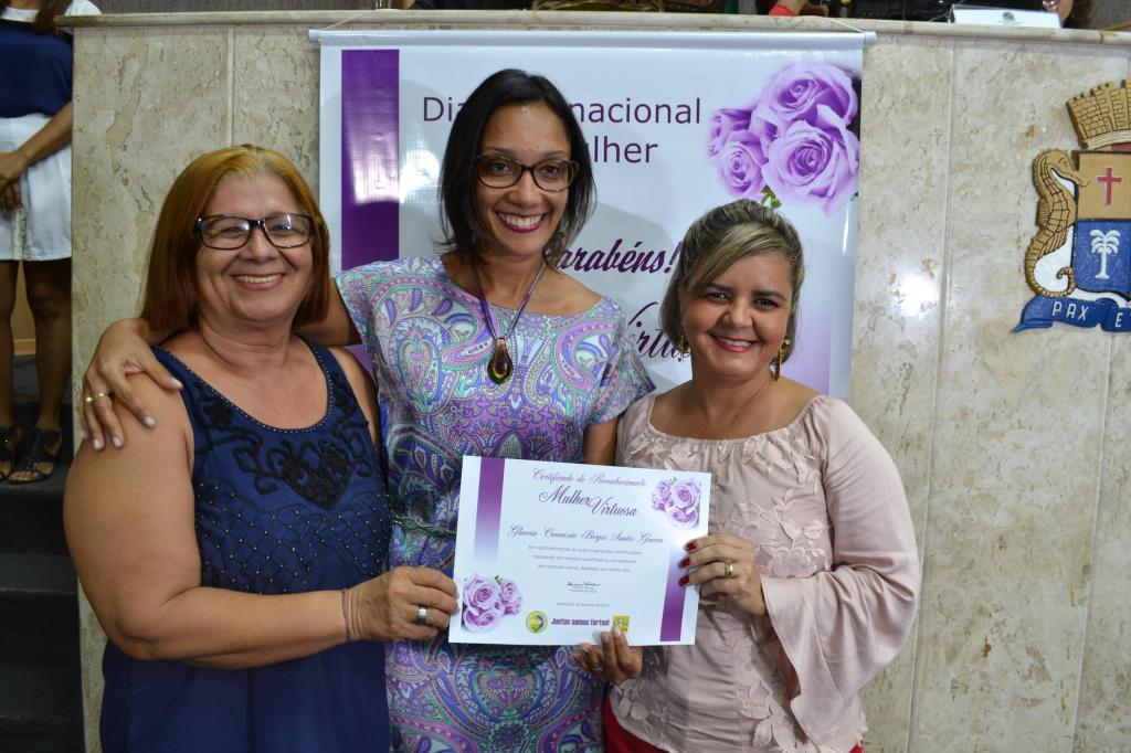 Na tarde da última quarta-feira, 2, a presidente da Fundação Municipal de Formação para o Trabalho (Fundat), Gláucia Guerra, foi homenageada pela Federação Estadual das Entidades Comunitárias de Sergipe (Fecs), em uma solenidade realizada no plenário da Câmara de Vereadores de Aracaju. Na ocasião, ela recebeu o Certificado de Reconhecimento "Mulher Virtuosa", destinado a todas as mulheres que se destacam nas atividades que desempenham em benefício da sociedade.