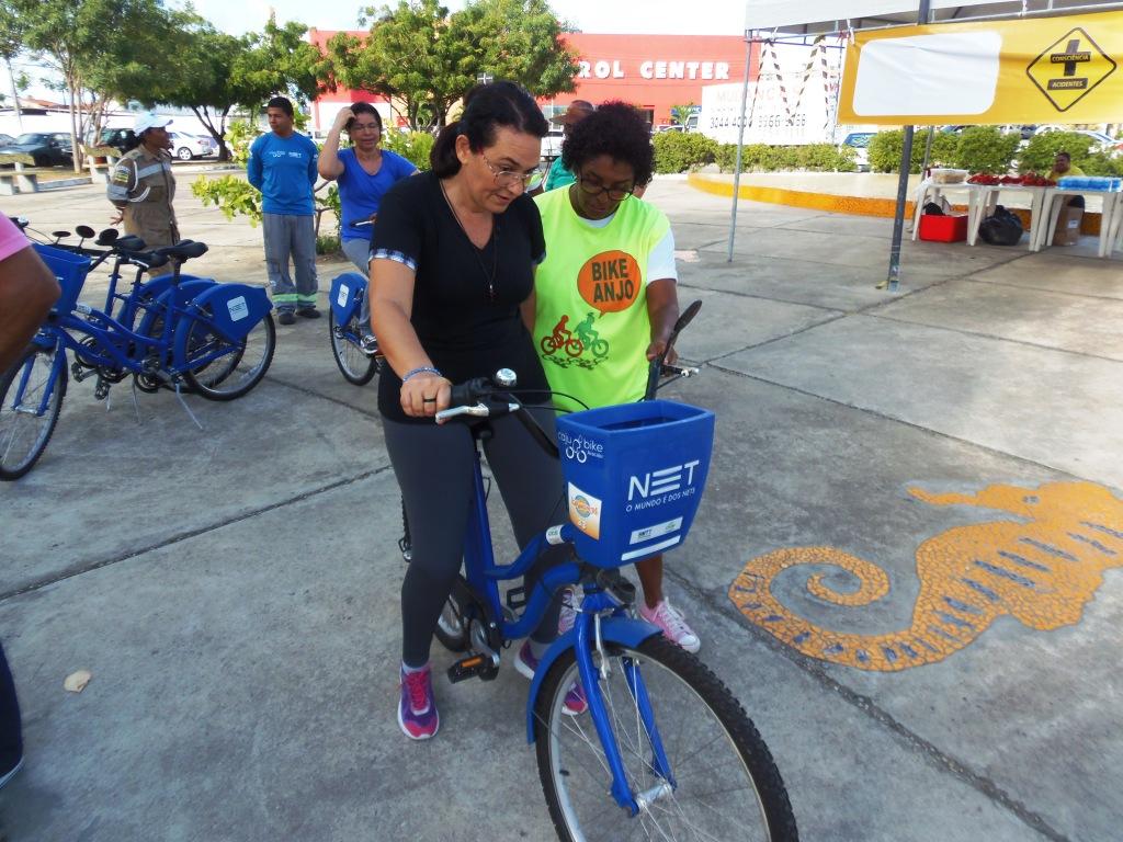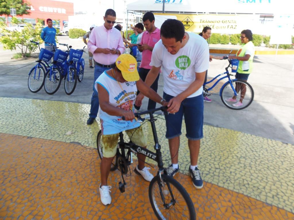 Ciclistas já experientes ensinaram os adultos e idosos que possuem algum tipo de medo em enfrentar o trânsito em duas rodas ou ainda não sabem pedalar, a utilizar a bike pela primeira vez. As aulas práticas tiveram o auxílio da Escola Bike Anjo (EBA) e da Sertel que levou algumas bicicletas do Caju Bike. A manhã animada contou com a participação do grupo “Cones” de teatro que passou a mensagem de respeito aos ciclistas e incentivo ao uso da bicicleta. A equipe da Polícia Rodoviária Federal (PRF) também esteve presente nas atividades e aproveitou para conscientizar os condutores no combate ao mosquito Aedes Aegypti.
