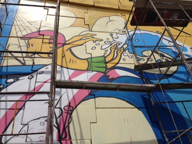 O trabalho, com traçados modernos e surrealistas ao mesmo tempo, começou a ser feita em meados de fevereiro, consistindo, primeiramente, numa limpeza geral das paredes e na pintura base para os desenhos. A previsão é que os trabalhos continuem por mais 30 dias seguidos. "Cada paredão leva em média oito dias e começamos lixando as paredes e passando tinta acrílica para dar base aos desenhos. Em seguidas pintamos as imagens e por último o verniz para deixar mais brilhante e conservar as pinturas. A cada seis meses é preciso fazer uma manutenção com verniz para preservar a obra", contou Aniceto.Segundo a gerente de Marketing da Pisolar, Isabela Mendonça, a obra está sendo realizada dentro do prazo previsto. "Sempre passamos no local e verificamos o desenvolvimento das pinturas. Tudo está dentro do programado e estamos adorando os resultados. Ali estamos empregando imagens que são referências para os sergipanos. Assim, teremos Zé Peixe saltando em meio a outros desenhos. Vamos ver o Arthur Bispo do Rosário (grande nome das artes com reconhecimento mundial), além das imagens do nosso folclore, com muitos dançarinos e artistas, passando, obviamente, pela Gastronomia, com nossos cajus e os conhecidos caranguejos", contou Isabela.