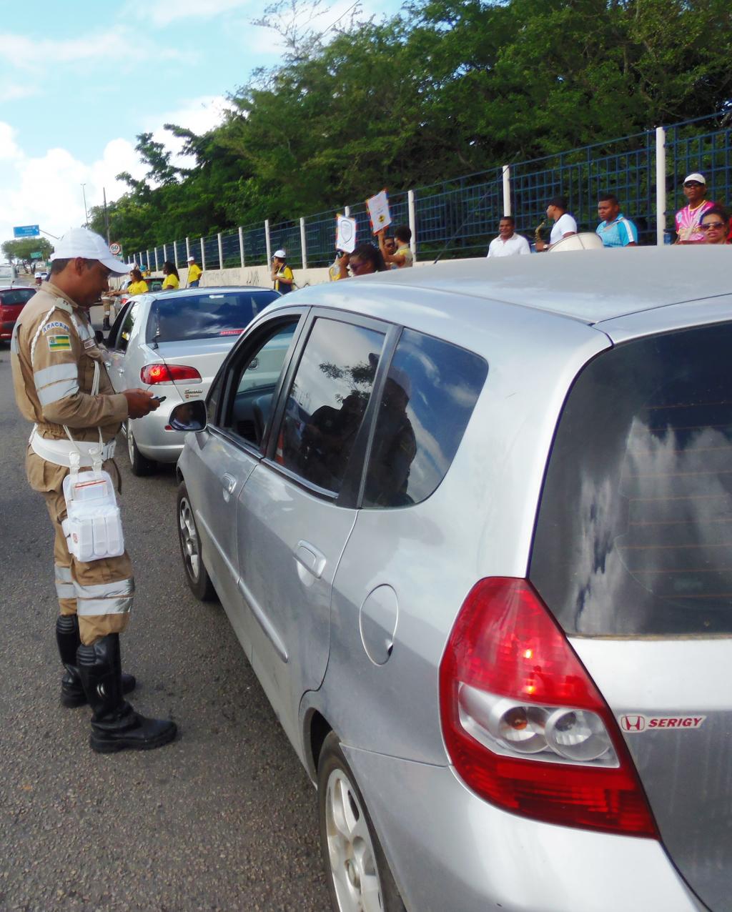 A blitz foi montada nas proximidades do Ministério Público do Estado de Sergipe, onde agentes da SMTT orientaram o trânsito e fiscalizaram os veículos, enquanto a PRF realizou o teste do bafômetro. Panfletos e adesivos foram distribuídos para os motoristas que ainda receberam dicas para evitar imprevistos no feriado. O grupo de teatro ‘Os cones” também esteve presente e foi responsável por levar informação de forma lúdica, música e animação ao local.