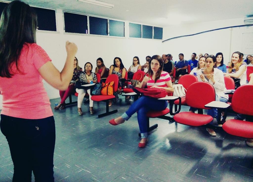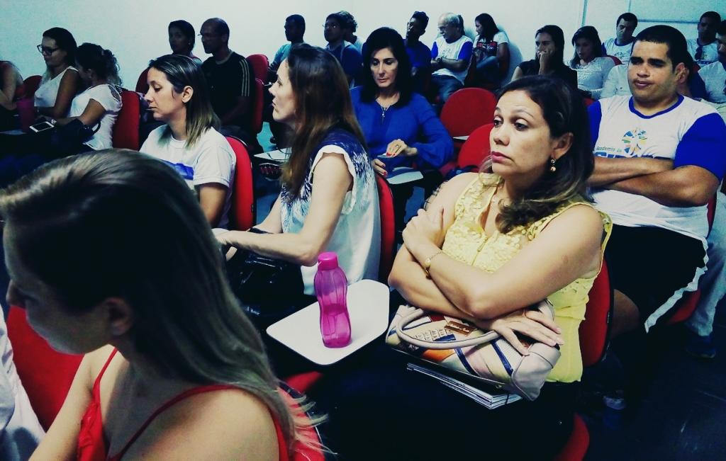 Durante a oficina, os profissionais trocaram experiências sobre a vivência diária da prática de promoção à saúde, além de discutirem a constante preocupação com a qualidade de vida dos alunos, sendo este um dos temas centrais da ação.