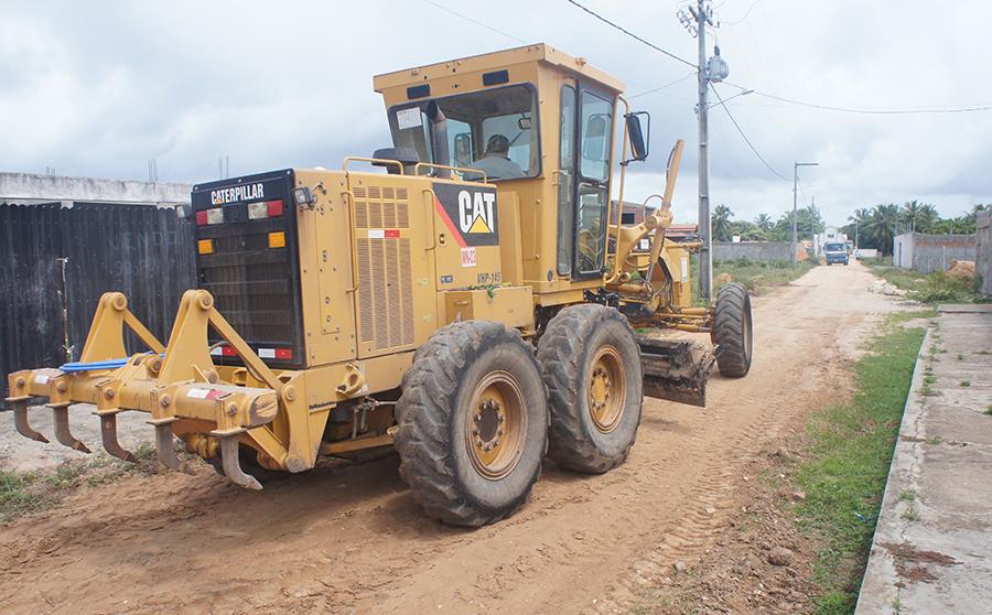 A comunidade é composta por seis ruas que estão recebendo revestimento primário, feito com máquinas próprias e materiais produzidos pela empresa municipal. De maneira ágil, neste momento são feitos os forros com piçarra para formar a base do solo que receberá um novo pavimento futuramente.
