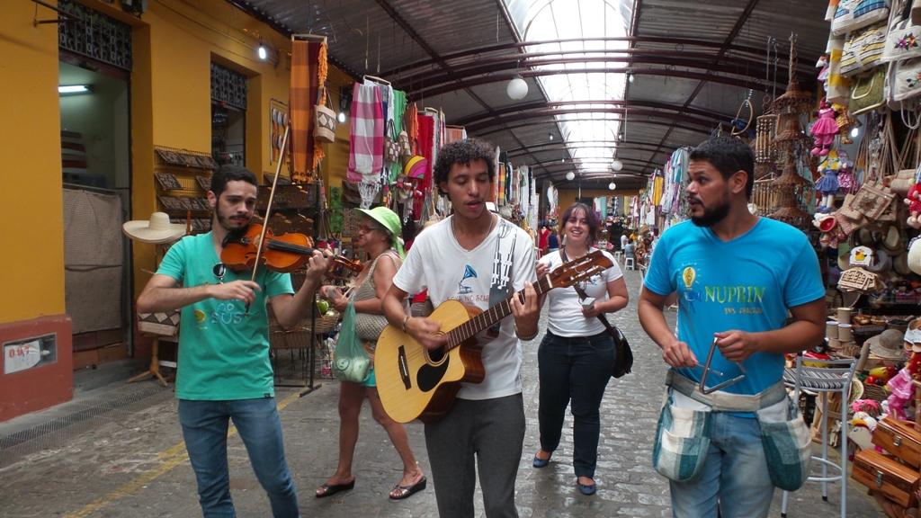 Ainda dentro da programação do Dia Mundial da Saúde, os integrantes do Núcleo de Projetos Inovadores (Nuprin) da SMS, estiveram no mercado Thales Ferraz com o objetivo de promover um momento de descontração entre os feirantes e visitantes do local. Tocando e cantando, eles percorreram os corredores do mercado numa atividade que emocionou muitos dos presentes. Vendedora de flores, Janete Gonçalves, ofereceu rosas para a equipe do Nuprin e agradeceu a iniciativa. "Esse trabalho que vocês desenvolvem é lindo. Fiquei muito feliz de poder participar desse momento aqui hoje e distribuir as rosas para demonstrar o meu agradecimento.