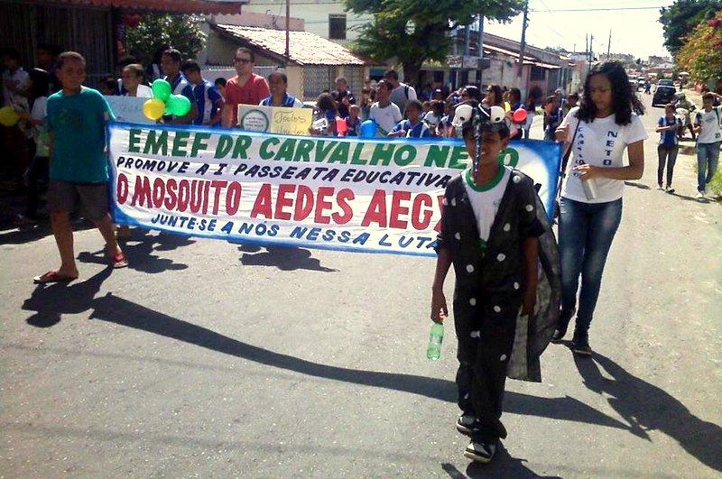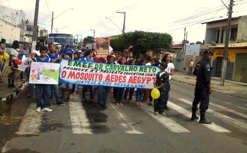 Os alunos da Escola Municipal de Ensino Fundamental (EMEF) Carvalho Neto realizaram, na manhã do último sábado, 9, a 1ª passeata contra a proliferação do mosquito Aedes aegypti. No período de 4 a 8 de abril foram realizadas várias atividades com os estudantes em sala de aula que foram colocadas em ação no dia da passeata.