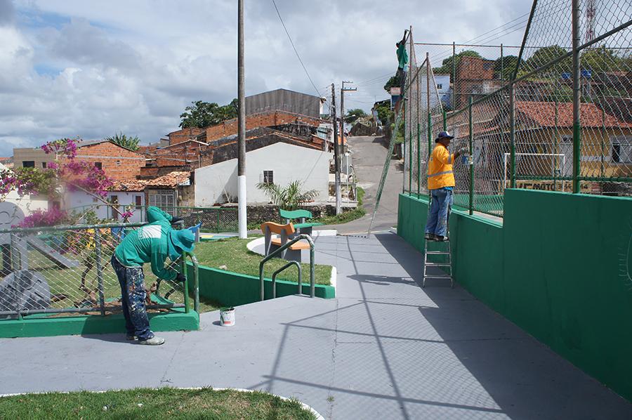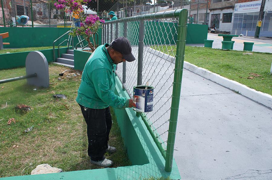 O trabalho mais recente acontece na praça Juiz Manoel Babosa de Souza, localizada no bairro Cidade Nova, Zona Norte, e envolve a revitalização da estrutura e dos equipamentos, pintura, reparos e paisagismo de toda a área.