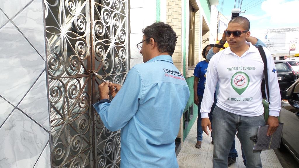 Dando continuidade às ações de combate e prevenção ao Aedes aegypti, a Prefeitura de Aracaju, por meio do Programa Municipal de Controle do Aedes aegypti e da Coordenação de Vigilância Sanitária (Covisa) da Secretaria Municipal de Saúde (SMS), realizaram uma vistoria na tarde desta quarta-feira, 13, com o objetivo de abrir duas residências que encontram-se fechadas na rua Simão Dias, no Centro de Aracaju. As demandas foram recebidas através do telefone 156, da Ouvidoria da Saúde, que tem sido uma ferramenta importante para ajudar a identificar possíveis focos do mosquito.