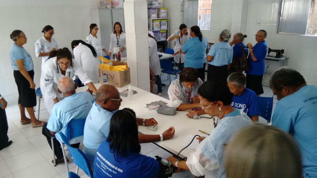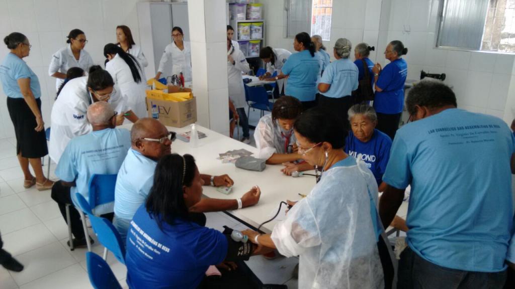 O evento reúne aproximadamente 400 idosos. Segundo a apoiadora Michelle Dias, foi a igreja que solicitou a participação da SMS no congresso, mas a iniciativa ajuda a fortalecer o trabalho da Secretaria. “Essa é uma ótima oportunidade de fazermos também o reconhecimento dos idosos da nossa região, já que muitos deles apresentam dificuldades para se locomover até as Unidades de Saúde da Família (USF). Além disso, diante da avaliação aqui realizada, os idosos que apresentaram alguma alteração na saúde já receberam encaminhamento para acompanhamento pela USF de referência deles”, destacou.