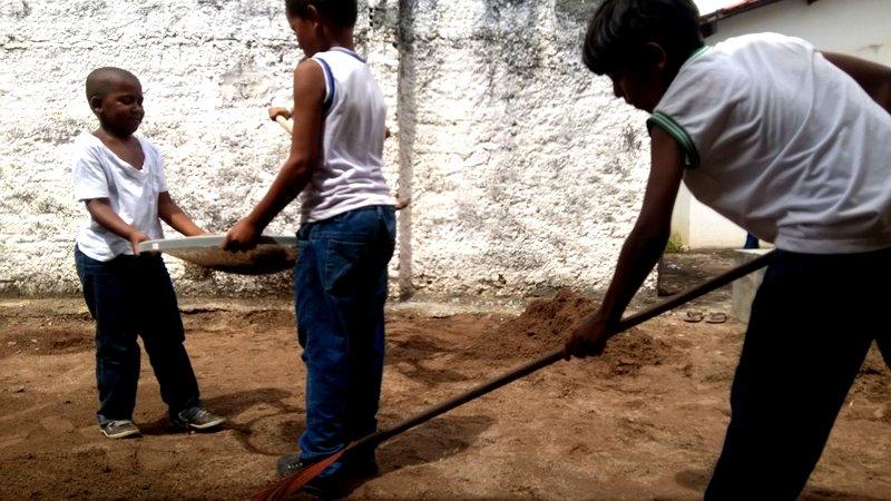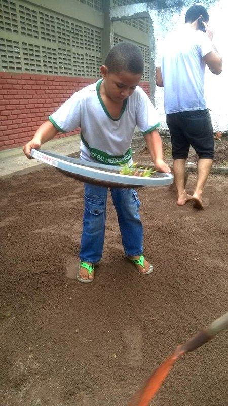 "Mostramos aos alunos que, através da horta, podemos ter uma alimentação saudável, explicamos a eles que as plantas também produzem oxigênio, desde a terra até a plantação estamos relatando como tudo funciona. Preparamos a terra para fazer a adubação e logo após vamos fazer a plantação das frutas e dos legumes", explicou Deyvis.