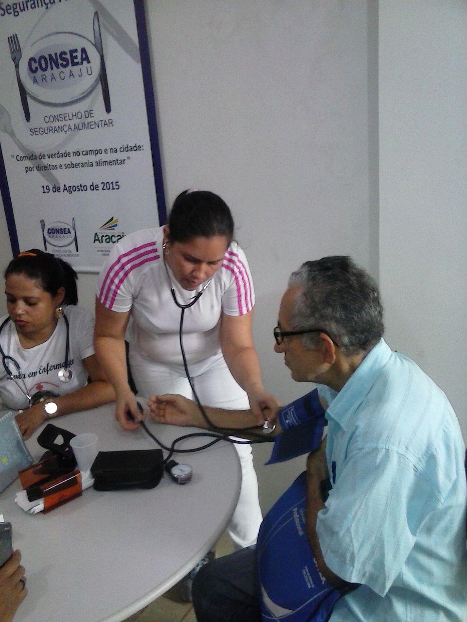 Para comemorar a data, a presidente do CONSEA, Joelma Barros, convidou integrantes dos Conselhos de Direitos do município de Aracaju para assistirem à palestra ministrada por Cleiton Oliveira, professor do Curso Técnico de Enfermagem do Senac, intitulada “Combate e prevenção da hipertensão através da alimentação saudável “. Alunas do curso de enfermagem do SENAC aferiram a pressão dos participantes do evento.