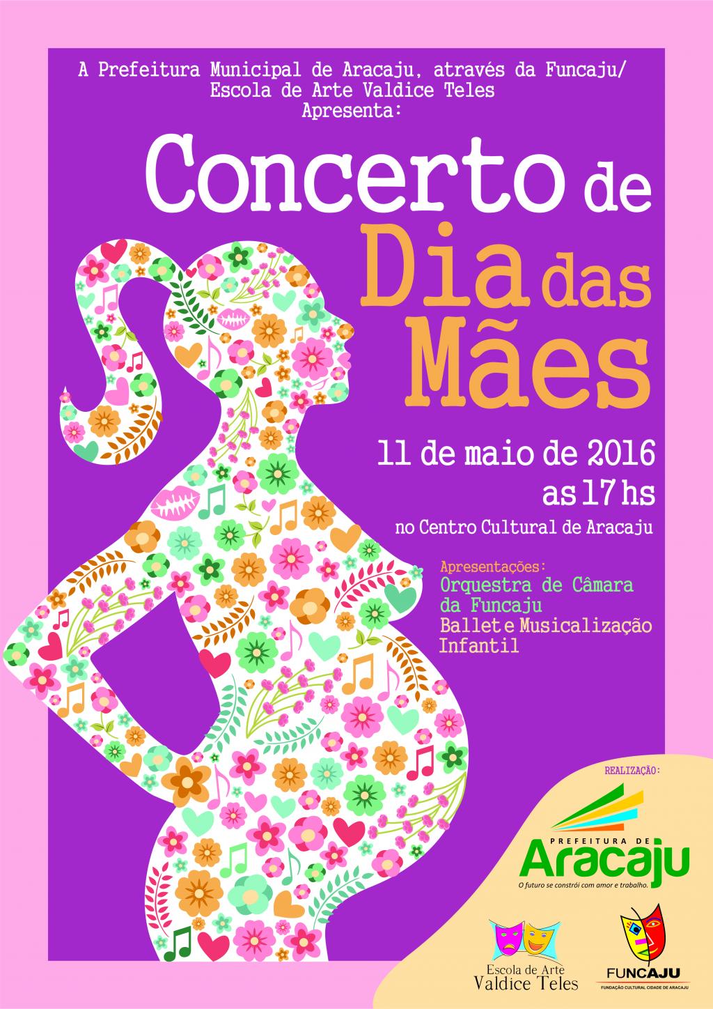 A Escola de Arte Valdice Teles, unidade da Fundação Cultural Cidade de Aracaju (Funcaju), apresentará ‘‘Concerto de Dia das Mães''. O evento acontecerá no dia 11 de maio, às 17h, no Centro Cultural de Aracaju (antiga Alfândega).