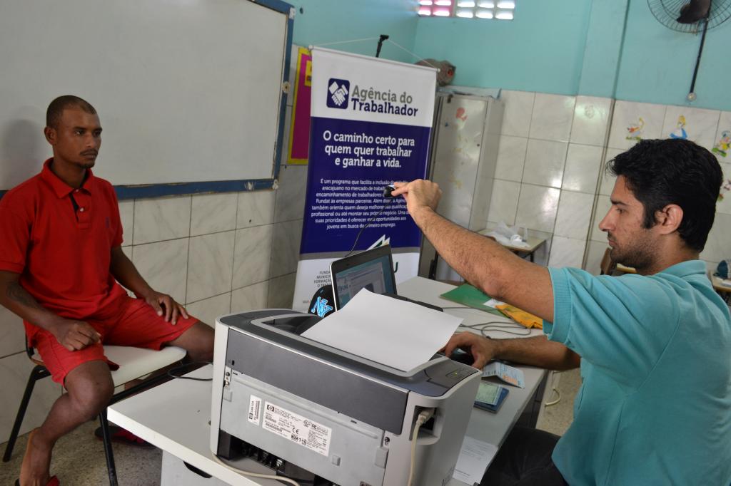 Atos dos Santos, de 22 anos, trabalha como encanador e compareceu à escola para solicitar a segunda via da CTPS. "A primeira [carteira] estava cheia, e sem ela ninguém consegue trabalhar, ninguém vai contratar", explica Atos, elogiando a rapidez do atendimento.
