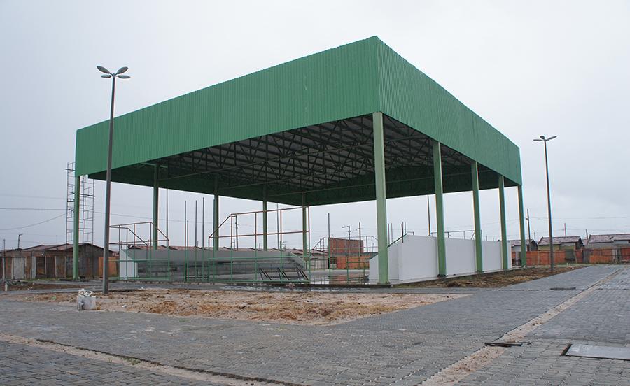 A obra se encaminha para os últimos ajustes, estando atualmente com a pavimentação da parte externa em execução, retoques e acabamentos das estruturais prediais, que abrigarão as atividades lúdicas e culturais e, em seguida, será finalizada a pintura de todos os equipamentos.
