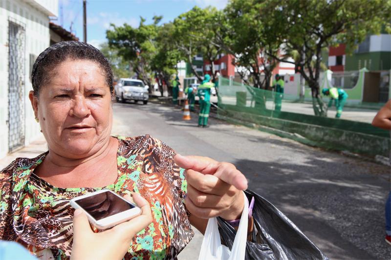 "Eu moro aqui e vejo que o trabalho que a Prefeitura faz é sempre para o nosso bem, o que mais nos incomoda é o canal, que por vezes cheira mal, mas, vejo que muitas das vezes somos nós que não contribuímos para que a nossa cidade fique mantida assim. Canso de ver alguns moradores jogando lixo no canal, nos terrenos. Mas graças a vocês nós podemos respirar um pouco de limpeza, parabéns pelo trabalho", contou a aposentada Simone Alves.