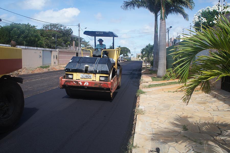 Na manhã desta sexta-feira, 20, novos trechos receberam as primeiras camadas asfálticas avançando mais ainda na fase de pavimentação e transformando ainda mais o parque urbanístico do loteamento Aruana.