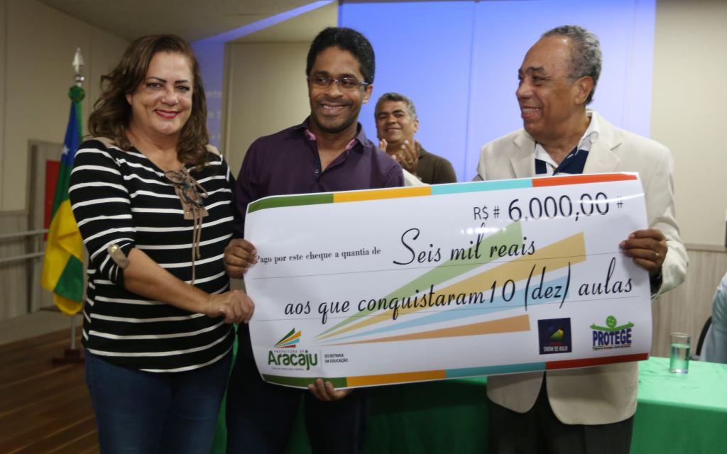 Dentro do projeto de valorização profissional e de aperfeiçoamento da Educação Municipal, o prefeito João Alves Filho premiou na tarde desta sexta-feira, 20, no auditório da Escola Municipal de Ensino Fundamental Presidente Vargas, no bairro Siqueira Campos, os professores que participaram do concurso Show de Aula. As 153 aulas vencedoras com 49 professores contemplados formaram o quantitativo da edição do concurso do ano 2015, no qual o docente pôde ganhar prêmios de R$600 a até R$ 6 mil.