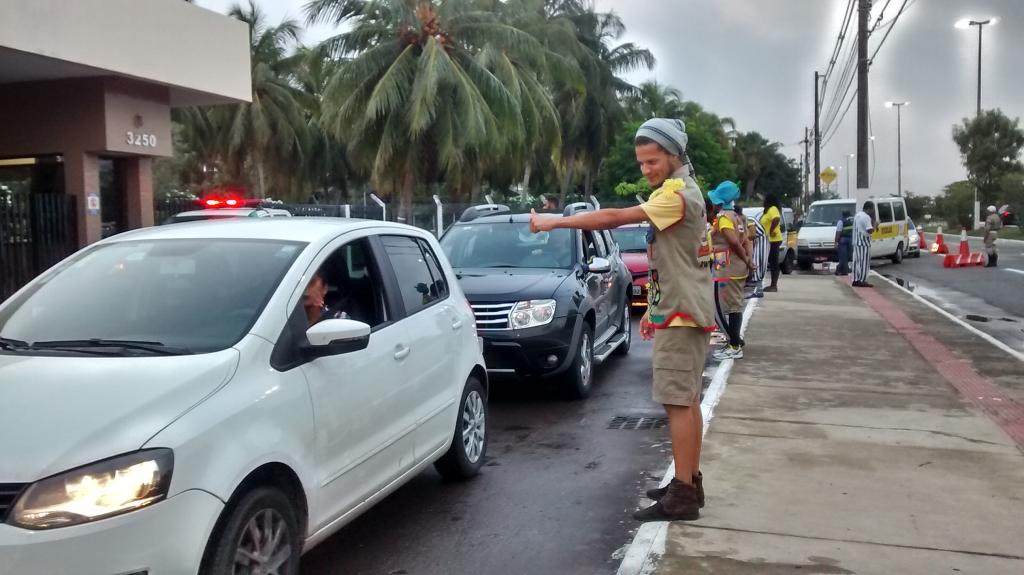 O Grupo de Teatro "Cones" e os agentes da SMTT abordaram os condutores que passaram pela Avenida Beira-Mar conscientizando e oferecendo a vacina. O objetivo foi levar a campanha para mais perto da população, que é atendida de forma rápida e eficaz.