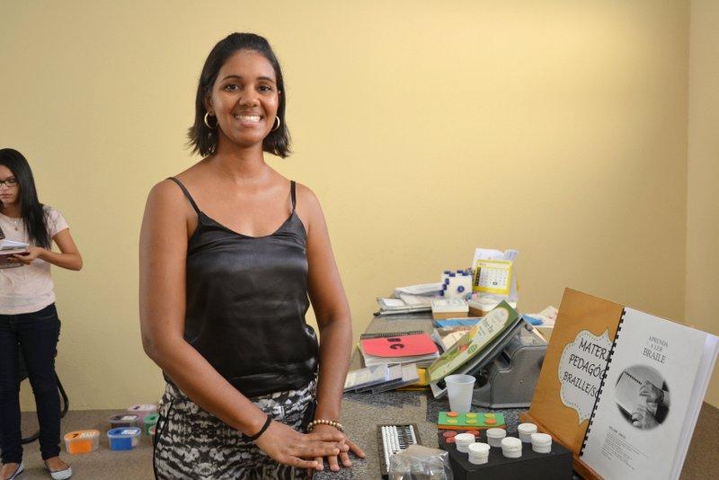 "Trouxemos materiais de estimulação precoce para bebês, leitura e escrita no sistema braile para cegos, soroban para exercitar matemática, educação física adaptada que veio com a apresentação de outro ponto tratado na palestra que é orientação e mobilidade. A arte e o lazer também estão incluídos, pois nossos alunos aprendem música, canto, a tocar instrumentos e trabalhar com modelagens", diz a coordenadora.