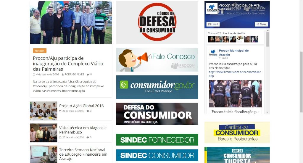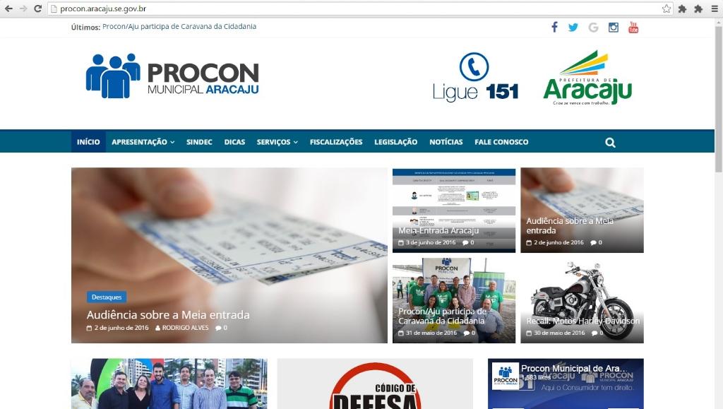 O Programa de Proteção e Defesa do Consumidor Municipal de Aracaju, Procon/ Aju acaba de lançar o novo site da instituição, o www.procon.aracaju.se.gov.br , uma importante ferramenta que dá mais agilidade no atendimento ao consumidor. A plataforma recém-lançada conta ainda com notícias, a nível local e nacional a respeito de novidades e direitos do consumidor, acesso ao Sistema Nacional de Informações de Defesa do Consumidor (SINDEC) para fornecedores e consumidores, pesquisas, histórico, recalls, ranking de reclamações e legislação.