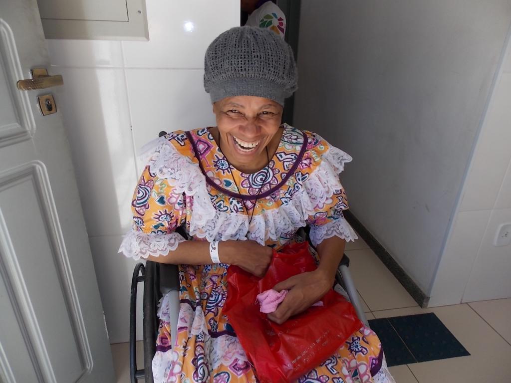 Ana Jaria Matheus, usuária da unidade que possui deficiência motora, aguardou com expectativa a chegada do ônibus junino. Com duas horas de antecedência, a assistida já estava pronta para ouvir o forró tocado pelo trio pé-de-serra. “Eu gosto de forró, comer milho, fogueira. Estava ansiosa para participar dessa festa”, comenta.