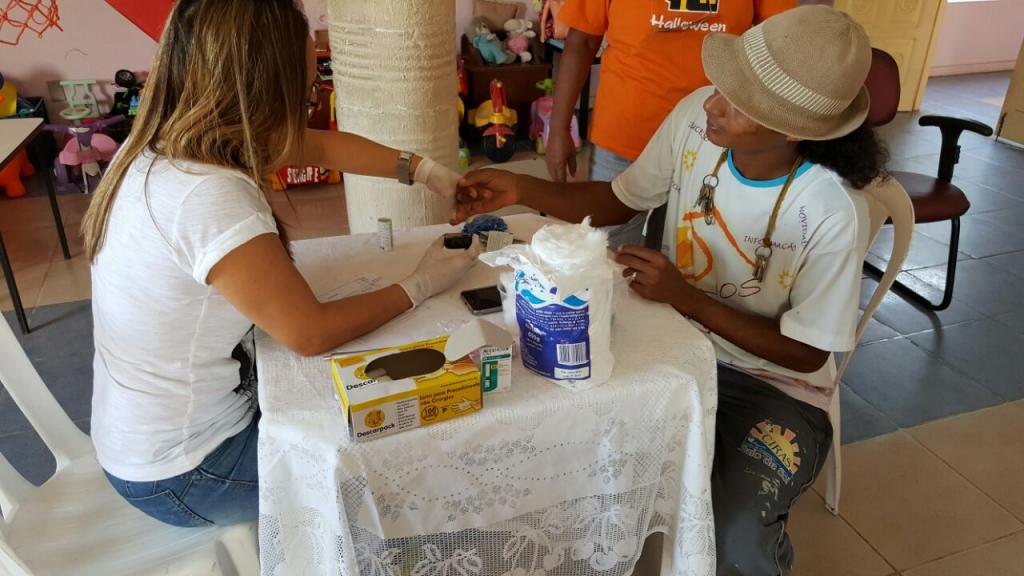 O Centro de Testagem e Aconselhamento (CTA) Itinerante, da Secretaria Municipal da Saúde (SMS), passou a manhã desta segunda-feira , 01, realizando testes rápidos de HIV, Sífilis e Hepatites no Centro de Integração Raio de Sol (Ciras), localizado no bairro Santa Maria. As equipes da SMS levaram ainda até o local outros serviços de promoção à saúde, como exame de glicemia capilar e aferição de pressão. Os funcionários da ONG e as mães dos assistidos puderam realizar os exames de forma rápida e segura, recebendo os resultados em 20 minutos. No total foram feitos 49 exames de glicemia, 55 aferições e 280 testes rápidos, sendo dois reagentes para Sífilis e dois para Hepatite B.
