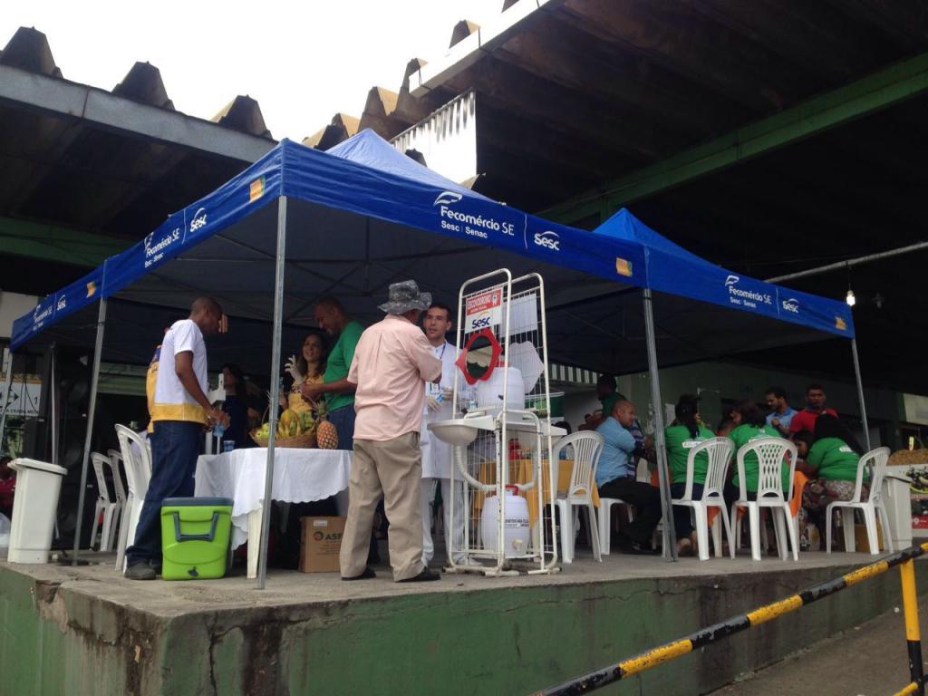 A Central de Abastecimentos de Aracaju (Ceasa) recebeu na manhã desta quinta-feira, 25, Dia do Feirante, uma ação de saúde promovida pelo Programa Mesa Brasil do SESC em parceria com a Secretaria Municipal de Saúde (SMS). Na ação, os feirantes tiveram acesso ao CTA Itinerante, que realizou 288 testes rápidos de HIV, Sífilis e Hepatites Virais, além de 90 testes de glicemia e 190 aferições de pressão arterial. Também foram realizadas medições do Índice de Massa Corpórea (IMC) durante as atividades laborais.