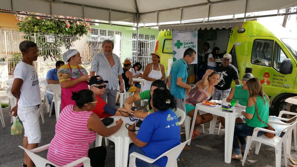 Na manhã desta sexta-feira, 9, foi a vez da feira livre do conjunto Castelo Branco receber as ações da Caravana Saúde Aracaju. As equipes da Secretaria Municipal de Saúde (SMS) trabalharam durante toda a manhã oferecendo aos feirantes e a comunidade diversos serviços de promoção à saúde. O Centro de Testagem e Aconselhamento (CTA) Itinerante realizou 336 testes rápidos de HIV, Hepatites e Sífilis. Também foram feitos 99 exames de glicemia capilar e 123 aferições de pressão arterial, sendo que 21 pessoas apresentaram alterações nos exames, receberam no local as primeiras orientações sobre os cuidados que devem adotar e foram encaminhadas para a Unidade de Saúde da Família (USF) mais perto de onde moram. No total, foram realizados 558 atendimentos. Durante a ação houve ainda a distribuição de preservativos femininos e masculinos, além de panfletos educativos.