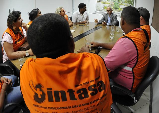 Reafirmando o compromisso em possibilitar o pagamento do salário dos servidores em dia e sanar problemas deixados pela administração passada, o prefeito Edvaldo Nogueira recebeu na manhã desta segunda-feira, 9, a visita da comissão do Sindicato dos Trabalhadores na Área da Saúde do Estado de Sergipe (Sintasa).